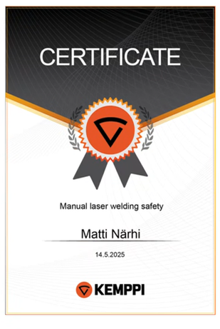 Súčasťou bezpečnej prevádzky je zriadenie ochrannej zóny (LCA), používanie predpísaných osobných ochranných pracovných prostriedkov a dohľad kvalifikovanej osoby pre laserovú bezpečnosť (LSO). Na podporu správneho používania poskytuje Kemppi aj odborné školenie formou e-learningu, ukončené certifikáciou.